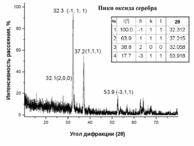 Не трудно заметить, что в дифракционном спектре рентгеновского излучения для образца, подвергнутого плазмохимической обработке в среде аргона, присутствуют только полосы серебра, в то время как при плазмохимической обработке в среде кислорода, отсутствуют полосы серебра, но появляются полосы, соответствующие окисленной форме серебра.