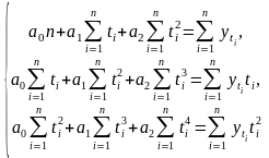 В частности, для полиномиальных кривых роста метод наименьших квадратов приводит к системе нормальных уравнений для определения неизвестных коэффициентов-параметров этих кривых. Для полинома первой степени