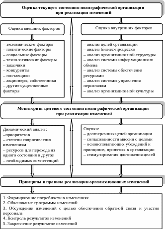Проведение организационных изменений в полиграфической организации – процесс трудоемкий, требующий комплексного подхода, высокого профессионализма всех участников и непосредственного осознания необходимости его осуществления.