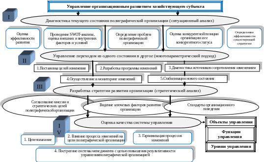В диссертации автором разработана структурно-логическая схема управления организационным развитием хозяйствующего субъекта, осуществляющего полиграфическую деятельность, которая обеспечивает целенаправленное качественное развитие (рис. 4).