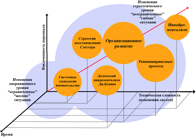 – методика организационного развития для радикальных изменений в организации на основе постепенного организационного обучения и развития;