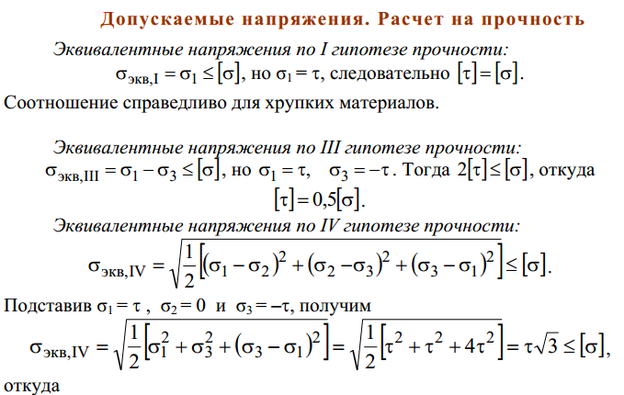 Расчет на прочность при чистом сдвиге по допускаемым напряжениям.