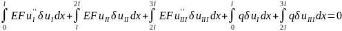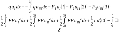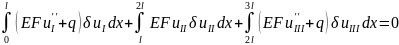 Запишем условие аннулирование невязки для трёх участков, используя сильное вариационное уравнение: