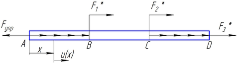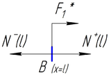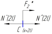 Т.к. после приложения сил стержень займет новое положение равновесия, то каждое сечение стержня также будет находиться в равновесии.