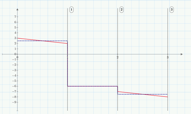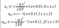 Использование метода кусочно-линейных аппроксимаций приводит к хорошим результатам с низкой погрешностью по энергии (в нашем случае 0,166% см. 5 пункт). Но при этом функции внутренних усилий получаются разными, а силовые граничные условия выполняются лишь асимптотически. В связи с тем, что функция перемещений аппроксимируется прямыми на отдельных участках, полученное приближенное решение будет совпадать с точным на тех участках, где перемещения линейные (т.е. нет распределенной нагрузки).