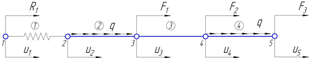 , т.к., согласно условию закрепления системы, левый конец первого конечного элемента, соответствующего правому концу пружины, закреплён консольно.