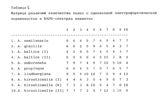Таким образом, проведённый RAPD-анализ ДНК манжеток дал обнадёжи-вающие результаты, показавшие возможность его использования для иденти-фикации представителей сложных агамных комплексов.