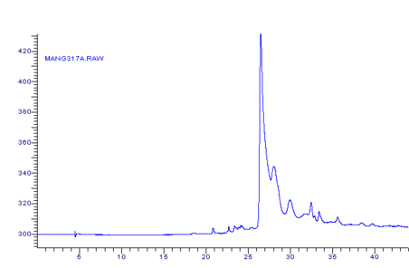 Хроматограмма свидетеля представлена на рисунке 10.Здесь агримониин ви-ден, как главный пик с несколькими минорными компонентами. Время удержи-вания агримониина 27 минут, а его УФ-спектр (рис.11) поглощения имеет мак-симумы при 220 и 280 нм.
