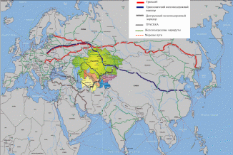 Как можно заметить, обязательным элементом практически всех рассмотренных МТК является Азия. По мнению специалистов Евроазиатского транспортного союза, в настоящее время значение евроазиатского сухопутного транзита резко возростает именно потому, что перспективы развития международного производства в Европе связаны преимущественно с увеличением экспортно-импортных операций в другие регионы мира, в первую очередь в Азию73. Страны, вовлекаемые в международные транспортные коридоры в качестве транзитных территорий, конкурируют или последовательно дополняют друг друга. Значительный экономический эффект, достигаемый от экспорта транспортных услуг, позволяет судить о возрастающей конкуренции как между этими странами, так и между компаниями, предоставляющими услуги транспортировки грузов различными видами транспорта.