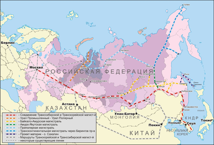 В 1996 г. началась разработка межправительственного соглашения по сети ТАЖД, когда секретариат ЭСКАТО определил четыре основных транспортных коридора, составляющих сеть ТАЖД. Два из них проходят по территории России: Северный коридор ТАЖД, составным звеном которого является Транссибирская магистраль и коридор «север – юг», призванный соединить Северную Европу через Россию со странами Кавказа, Центральной Азии и Персидского залива.