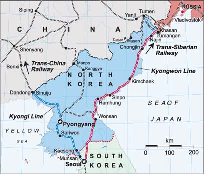 Что же касается КНДР, то ни экономические, ни политические намерения этой страны в отношении проекта не ясны, и идеология чучхе, которой следуют ее руководители, не оставляет надежды на то, что возникающая здесь неопределенность будет снята в ближайшее время. Тем не менее российская сторона инвестирует подготовительные этапы реализации проекта, а специалисты из Сибирского государственного университета путей сообщения совместно с учеными Института экономики и организации промышленного производства СО РАН провели экспериментальные расчеты по выявлению сравнительной эффективности конкурирующих вариантов проекта.
