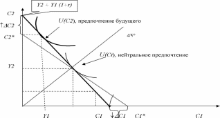 Если домохозяйство делает сбережения в период Т, отдавая предпочтение будущему, то одновременно сокращается потребление текущего периода на равнозначную величину