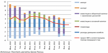 Ослабление внутреннего спроса отразилось на снижении инвестиционной и потребительской активности. Темпы роста потребления – основной движущей силы экономического роста в последние годы – серьезно замедлились по сравнению с прошлым годом. Резкое сокращение инвестиций было отчасти связано с завершением инфраструктурных проектов в рамках подготовки к зимней олимпиаде в Сочи и строительства трубопровода «Северный поток». Ухудшение предпринимательской уверенности, оказало негативное влияние на инвестиционный спрос.