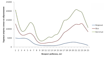 Рис. 6-6. Динамика расходов домохозяйств на образование с учетом дифференциации