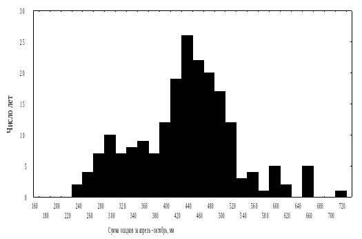 Рисунок 5.1. Распределение суммы осадков за период апрель-октябрь