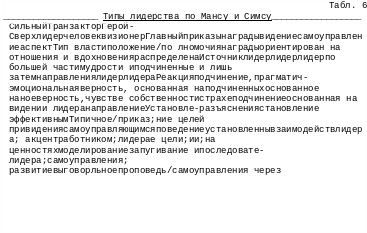 подчиненных и поведение лидера по отношению к другим членам команды (Табл. 6).
