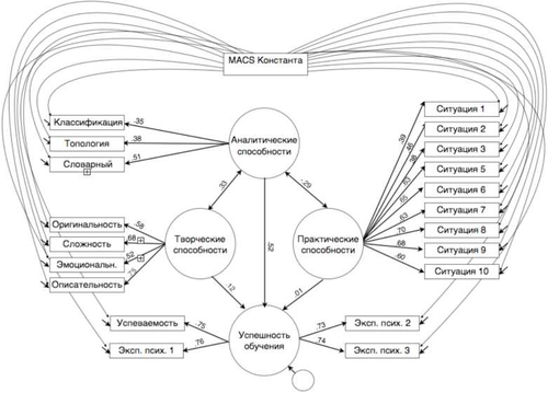 конструктам аналитических, творческих, практических способностей и успешности обучения.