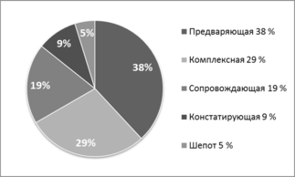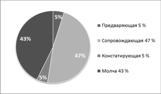 У детей ЭГ произошли изменения в речи. Произошло увеличение речевой активности детей (р<0.05), изменение видов речевых высказываний (см. рис. 3). В речи детей стала преобладать предваряющая речь. Сопровождающая речь претерпела изменения по направленности высказываний – в констатирующей серии речь не относилась к деятельности рисования, в контрольной – носила поясняющий характер. Большая часть