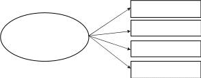 Структурная модель представляет собой визуализацию структурно- функциональных связей между переменными, основывающихся на матрице интеркорреляций, однако не сводимых к ее показателям. Прямоугольниками обозначаются измеренные переменные (показатели использованных методик), овалом – латентные переменные. Индексы над стрелками указывают величину вклада наблюдаемых переменных в латентные, либо являются показателем связи между латентными переменными.