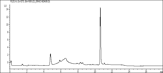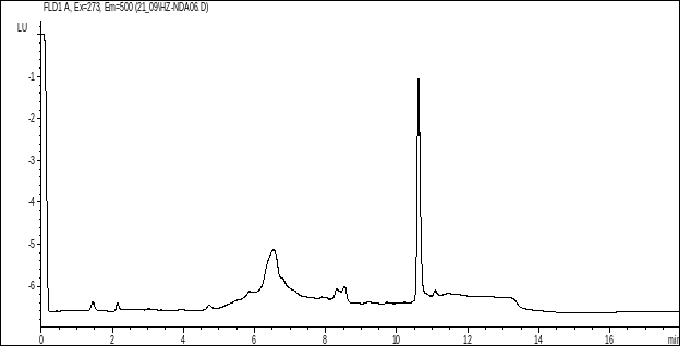 Литературных данных по дериватизации гидразинов дансил хлоридом практически нет. Известно только, что он образует флуоресцирующий продукт с НДМГ [ ].