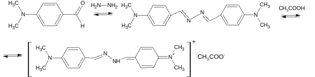 NH2NH2+ RR1CHO <> RR1C=NNH2 + H2O.