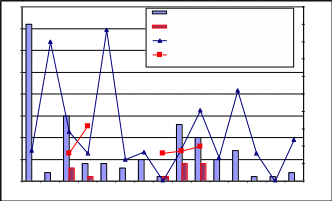 Количество дефолтов и общий объем эмиссий CLN российских заемщиков по секторам экономики за 2002-2010 гг. с учетом средней цены первичного размещения.