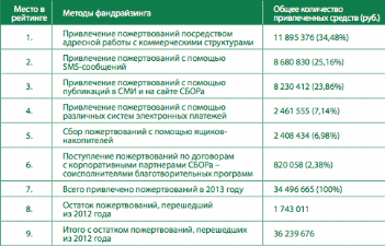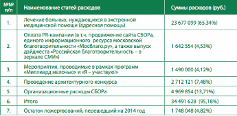 Таблица 2 Расходы пожертвований на уставную деятельность СБОРа в 2013 г.50