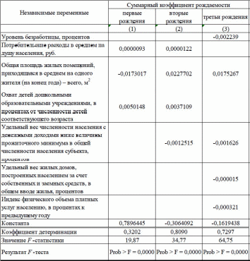 Анализ на региональном уровне позволяет использовать только общие характеристики экономического и социального уровня развития регионов. В конечном итоге социально-экономические факторы оказывают влияние на реализацию имеющейся потребности в детях, социально-экономическая стабильность позволяет воплотить в жизнь репродуктивные планы семьи.
