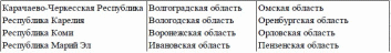 В 2014 году в список вошли следующие субъекты РФ87: