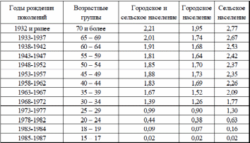 Приведенные данные отражают постепенное сокращение различий в интенсивности рождений между поколениями женщин в городе и сельской местности. Возможно, устойчивое снижение этого разрыва только