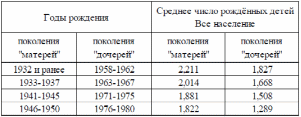 существенном снижении итоговой рождаемости в когортах дочерей по сравнению с материнскими когортами, которое, впрочем, уменьшалось в более молодых группах на фоне уже распространившейся среди матерей тенденции малодетности.