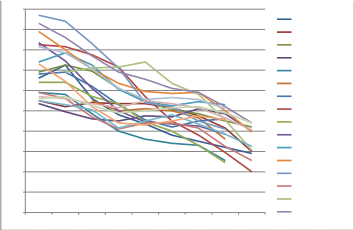 Во всех странах динамика коэффициента практически однонаправленная. В «стартовом» уровне (1970 г.) этого показателя в группе
