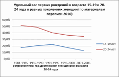16 Данные по поколению достигших 20-24-летнего возраста в 2006-2010 гг. мы не рассматривали, так как часть женщин этой группы еще не достигла к 2010 г возраста 30 лет.
