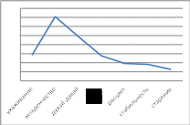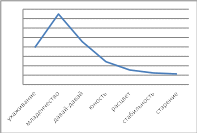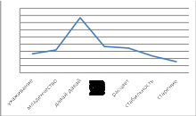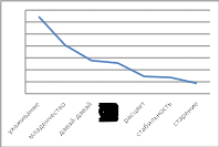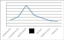 Стадия, на которой находится организация – ухаживание, ей соответствует индекс 0,71, отрыв от следующей стадии – 0,17, это говорит о том, что организация находится на переходном этапе, и ей присуще более 50% характеристик стадии младенчество.