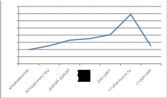 Основная деятельность организации – оптовая торговля алкогольными и другими напитками, зарегистрирована в 1992 году, Брянская область. Согласно анализу анкет пятнадцати опрошенных респондентов, разброс индексов ЖЦО представляется следующим образом: