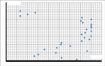 конкретный фактор - управление знаниями, и его реальное воздействие на положение организации на кривой жизненного цикла. Таким образом, мы получаем тридцать точек на плоскости, обладающих следующими координатами Х;У, где Х - качество управления знаниями, а У - ранг жизненного цикла организации: