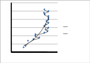 Для этого проведем анализ по 22 организациям, являющимся репрезентативными. Исключение нерепрезентативных организаций привело к тому, что логарифмическая линия тренда повторяет возрастающую кривую Адизеса, а второй линейный фильтр показывает незначительные отклонения. Убывающая кривая в исследовании не рассматривается, поэтому ее поведение неизвестно.