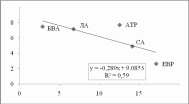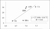 Данные на рис. 35 свидетельствуют об обратной зависимости удельного веса лиц старше 65 лет в общем объеме численности населения в регионе и среднегодовых темпов прироста богатства.