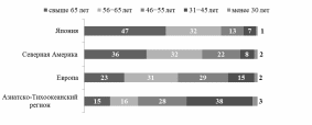 В табл. 29 представлена возрастная структура состоятельных лиц в регионах мира в