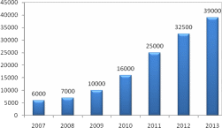 быстро растет конкуренция среди Интернет-магазинов в российском сегменте сети. Статистика показала, что в среднем, каждый день появляется 63 новых магазина. Еще 2 года назад этот показатель был почти в два раза меньше. На сайте портала приводится статистика, согласно которой в 2012 году в России успешно работало около 32,5 тысячи розничных Интернет- магазинов, а в 2013 году их число увеличилось до 39 тысяч (рост 20%).54 В