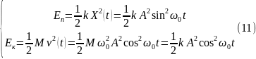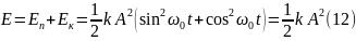 Из формул (11) видно, что и кинетическая и потенциальная энергия упругой деформации пружины тоже совершают колебания. При этом, когда кинетическая энергия достигает максимума потенциальная равна нулю и наоборот. Однако их полная энергия остается величиной постоянной