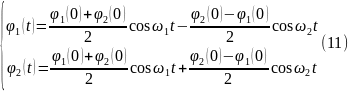 Таким начальным условиям в решении (10) соответствует выбор начальных фаз