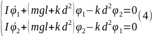 Подставляя значения моментов сил в уравнения движения (3), перенося все члены в левую часть и группируя подобные члены, получим систему уравнений следующего вида: