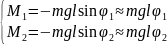 Уравнения движения маятников относительно горизонтальной оси, проходящей через точку