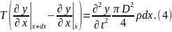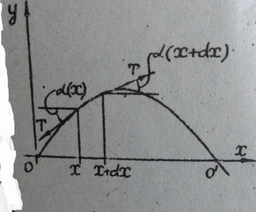 Разность этих проекций есть результирующая сила, определяющая движение рассматриваемого отрезка струны. По второму закону Ньютона она должна быть равна произведению массы элемента струны на его ускорение