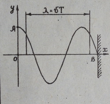 показывающего, что при отражении от закрепленного конца струны волна смещения частиц меняет знак. Она отстает по фазе на угол