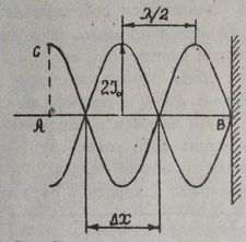 показывающего, что при отражении от закрепленного конца струны волна смещения частиц меняет знак. Она отстает по фазе на угол , что эквивалентно отставанию на полволны (говорят о потере полуволны при отражении).