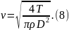 1. Пользуясь результатами первого эксперимента, вычислите для каждого значения силы натяжения струны по формуле (8) соответствующие значения скорости распространения волны смещений.