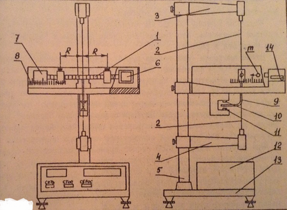 Оборудование: экспериментальная установка с крутильным баллистическим маятником, электронным секундомером и набором тел различной массы, весы, штангенциркуль.