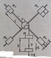 друг к другу и образующих крестовину; четырех одинаковых цилиндрических грузов массы
